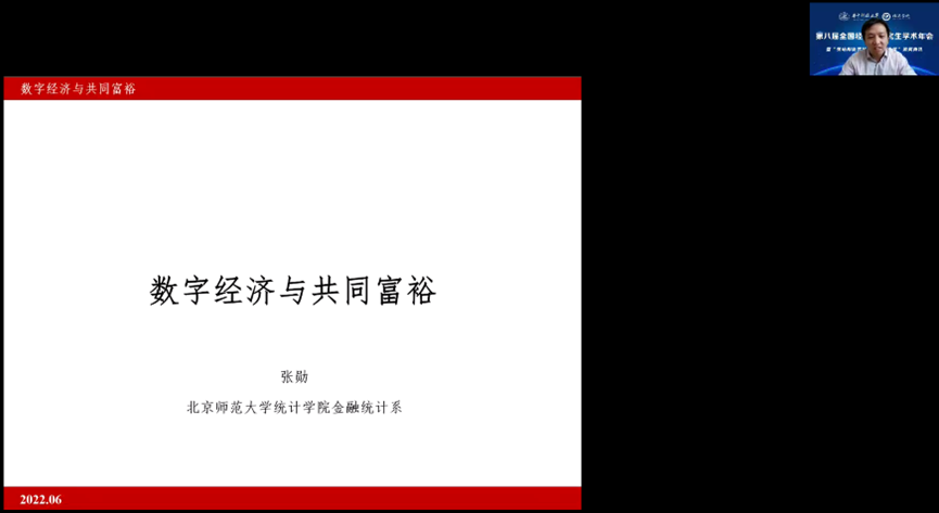 张勋教授报告的题目是《数字经济与共同富裕》。张勋教授指出共同富裕的关键词有丰衣足食,消除两级分化和贫穷,普遍富裕等,共同富裕是发展经济学的重要研究范畴。从研究的角度,共同富裕可以从以下三个途径实现:(1)收入增长和均等化。(2)财富增长和均等化。(3)机会均等化,包括但不限于就业和创业。数字经济的关键词有数字化,网络,效率提升和经济结构优化等。他强调,数字经济发展依赖于互联网,是中国经济发展的新动能。张勋教授认为从经济学研究的角度,从消费端和生产端理解数字经济更直观。消费互联网主要是满足消费者在互联网中的消费需求,其中数字金融起到了重要的作用。中国的数字金融发展很快,领先全球。原因多样,张勋教授认为大国是重要因素。工业互联网类似于产业数字化过程,在生产、交易、融资和流通等各个环节的网络渗透从而达到提升效率节约能源的效果。因此,消费互联网和工业互联网之间不是相互割裂的。理解数字经济和共同富裕的关系,可以从二者的联系和区别展开。最后,张勋教授通过分享文章《数字经济、非农就业与社会分工》介绍了数字经济的相关测度,数字经济的社会分工效应。消费互联网推动农村低技能劳动力就业,工业互联网推动农村高技能劳动力就业。张勋教授的第二篇文章《数字经济、普惠金融与包容性增长》指出,消费互联网从支付业务的发展和信贷业务的发展两个方面促进共同富裕的创业机制。最后,张勋教授介绍了三篇关于数字金融与数字鸿沟的文章,强调了数字经济的重要性,并提供了数字金融与共同富裕的一些研究思路。