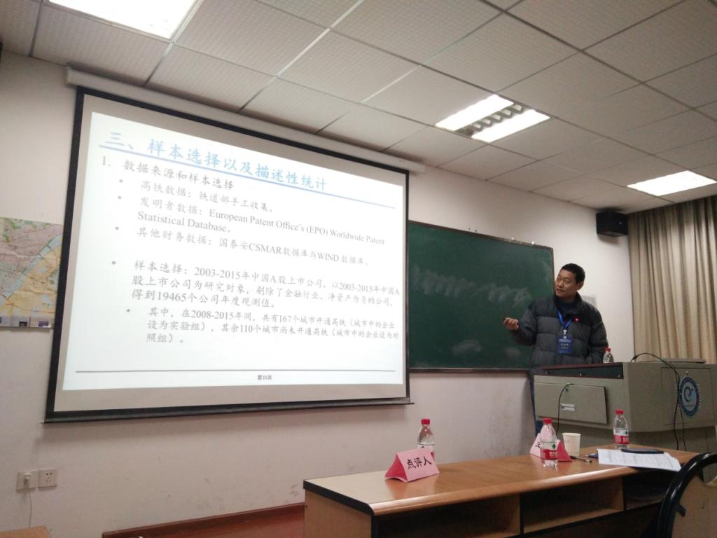 报告完毕后,浙江大学的张小茜老师对报告进行了评价(1)由于金融行业的薪酬差距往往更大,故是否考虑将金融企业包含在内;(2)关于文中大小城市的度量是以GDP为标准,应该将面积、人口等也考虑在内。主持人叶初升教授指出,应该考虑从时间成本的角度来衡量两者的关系,因为高铁的开通很大程度上是缩短了往返的时间,其次,叶老师指出,将大城市周边的小城市纳入考虑范围内可能更具有意义。