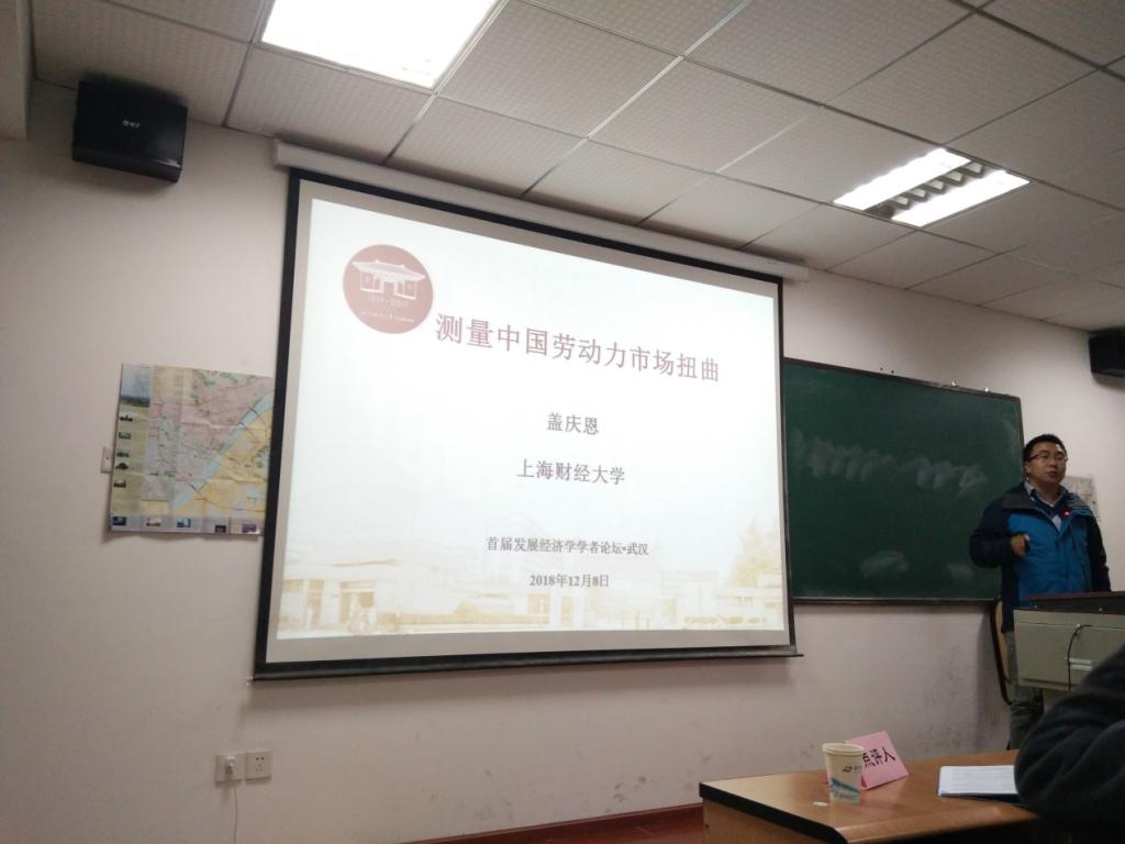 第二位报告者是上海财经大学的盖庆恩老师,他此次回报的论文是《测量中国劳动力市场扭曲》。盖老师指出,劳动力的大规模转移,尤其是跨区域的空间配置是改革开放以来中国经济快速增长的动力之一,但是户籍制度的约束使得中国劳动力的空间配置受到了阻碍,从而造成了较大的效率损失。文章假设劳动力在人口学特征方面存在差异,劳动力的不可观测的能力服从Frechet分布,以此来刻画劳动力的就业选择,使用2005年1%人口调查数据估计了中国劳动力市场的扭曲情况,研究结果表明:(1)中国劳动力的质量和劳动生产率在各行业间存在较大的差异,农业部门劳动质量最差,科学研究部门最高;(2)劳动力市场扭曲在各行业间也存在较大差异,主要存在于非农部门,其中建筑业和采矿业的劳动力扭曲最高;(3)从工作地和户籍所在地角度,劳动力市场扭曲在各省份之间也存在较大差异。最后,盖老师对本文研究的不足进行了简要的总结。