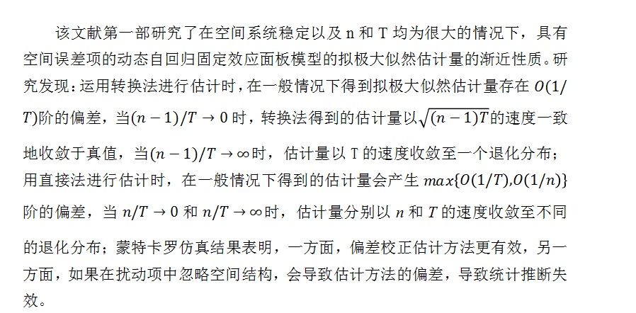 该文献第二部分讲述了空间权重随时间变化的情况,并给出了对应的参考文献。其中空间权重分为外生时变权重和内生时变权重,张嘉俊讲述了不同的估计方法,时变权重拓展了动态空间面板模型在实证分析中的应用价值。