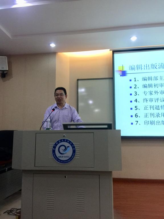 刘呈庆老师的报告包括期刊简介、审稿经验、写作建议、投稿建议以及英文刊CJPRE简介五个部分。刘呈庆老师先介绍了《中国人口、资源与环境》期刊创刊于1991年,曾由邓小平同志题写刊名,曾获得1997年第二届全国优秀科技期刊一等奖,2001年国家期刊提名奖,2003年全国百种重点期刊,2005年全国百种重点期刊等荣誉,学术影响方面2008年CSSCI排名NO.1,2016年CSTPCD排名 NO.1,2014年入选中国人文社会科学权威期刊,是自然科学基金委重要期刊,期刊主要关注持续发展、全球环境治理、绿色发展、循环发展、低碳发展以及气候变化等方面的内容。刘老师接下来向参会的师生介绍了编辑出版的流程包括编辑部主任分稿、编辑初审、专家外审、上终审评议会、正刊退修、正刊录用通知与作者自修校、印刷出版7个流程。创刊之初,编辑拥有较大决定权,2000年之后,随着研究的不断深入,引入了外审专家,编辑负责初审,参加终审评议会,编辑通过论文进一步深究的方向、题目是否符合期刊主题、论文是否严重学术不端、是否围绕研究目标展开、论述是否充分、第一作者是否博士或副教授以上、是否211、985平台公司机构、是否基金项目支持等方面遴选出质量较高、可以外审的稿件,其中进一步深究的方向包括总体创新性是否足够、文献综述是否到位、研究方法是否科学、研究结论是否依据科学分析自然得出、结论分析与讨论有否与前人呼应、研究建议是否有针对性等方面。针对以上的遴选标准,刘老师建议写作时选题要有新意、撰写要遵循逻辑、要听取别人的建议耐心细致修改、论文篇幅与主题相适应、研究领域要相对聚焦、循序渐进提高写作能力。关于投稿,刘老师建议论文署名要谨慎、要遵循投稿梯度、把握好出版周期、杜绝一稿多投、杜绝学术不端、及时关注期刊处理进展。最后刘呈庆老师介绍了《中国人口、资源与环境》的英文刊《Chinese Journal of Population ,Resources and Environment》(CJPRE)创刊于1992年春,2004年再刊,2016年被Emerging SCI,Web of Science 索引,2015年被SCOPUS,ScienceDirect索引,他指出随着中国经济体量的扩大,中国巨大的人口、能资源消费问题以及环境生态问题日益凸显,中国需要持续发展方面的重要英文期刊,CJPRE应时而复生,同时CJPRE也欢迎更多国内外学者踊跃投稿。