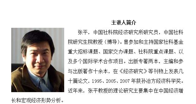 主讲人:张平 中国社科院经济研究所副所长、研究员