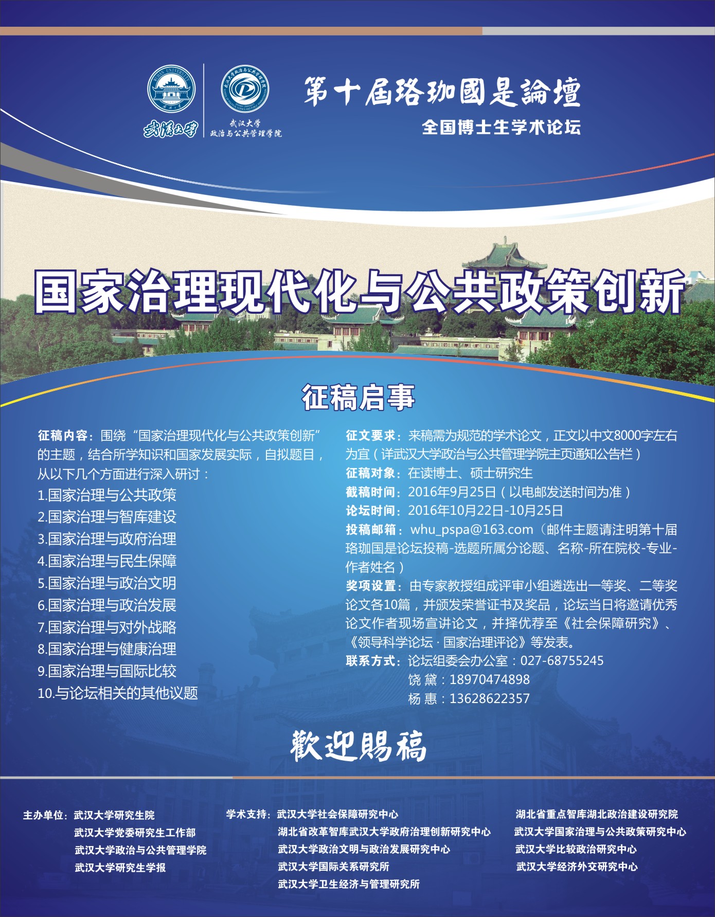【帮转】全国博士生学术论坛第十届珞珈国是论坛征稿启事